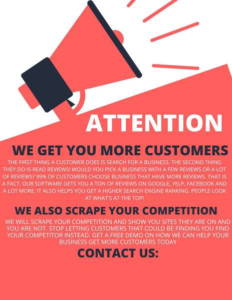 Everyone knows the businesses on top of Google do way better. More reviews better ranking and that equals more customers for you.